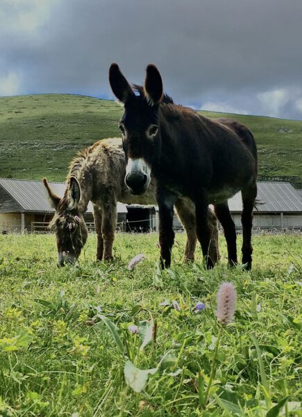 Nos ânes : Nos Grands noirs du Berry, Gris de Provences et Baudet du Poitou sont de remarquables compagnons de route, tous habitués à marcher en terrain varié, bâtés et d’une gentillesse hors du commun